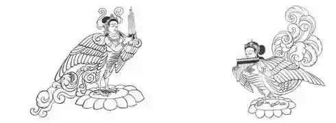 图六a盛唐莫高窟第45窟北壁观无量寿经变中的吹笙迦陵频伽(线描图)